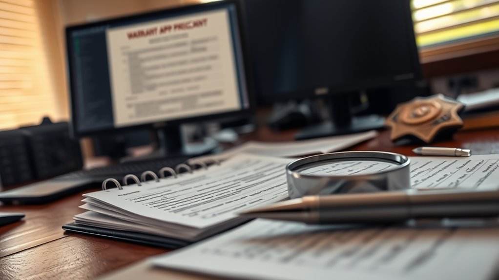 To issue a warrant, law enforcement needs probable cause, meaning trustworthy, specific, and recent facts that a reasonable person would believe a crime has occurred or evidence exists. This requires detailed information from credible sources, often supported by sworn affidavits reviewed by a judge. The facts must clearly describe the place or person to be searched or arrested, preventing overreach. Continuing will help you understand how courts evaluate and apply these standards in practice.