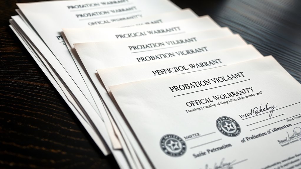 Understanding warrants for probation violations helps you grasp how the justice system enforces compliance. From issuance to penalties, each step guarantees accountability while safeguarding your rights. Knowing what triggers a warrant and how law enforcement handles the process empowers you to stay informed. So, next time you hear about probation violations, ask yourself: are you aware of all your legal options and responsibilities? Staying informed might just be your best defense.
