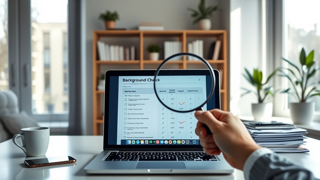 When conducting background checks for remote workers, you need to verify their identity, credentials, and trustworthiness using advanced tools like AI, biometrics, and blockchain. Address potential legal and regional challenges, especially with international hires, and stay aware of government data disruptions. Continuous monitoring helps catch changes over time. With remote work on the rise, understanding these strategies guarantees you hire confidently. Keep exploring to discover how to navigate these evolving screening processes effectively.
