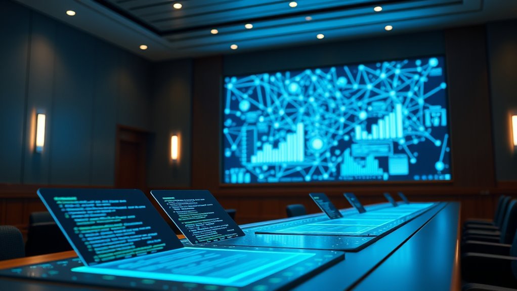 Using AI-generated transcripts carries significant legal implications. You must verify their accuracy and reliability, as courts demand near-perfect records, often 99.5% precision. You’re responsible for verifying transcripts through human review, especially since AI can produce errors or hallucinations. Additionally, safeguarding data privacy and maintaining chain-of-custody are vital. If transcripts aren’t properly certified or authenticated, they might be challenged in court, risking legal validity and affecting case outcomes.