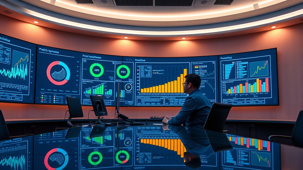Public dashboards are essential tools for displaying pretrial outcome metrics transparently to communities and stakeholders. They show key data like release rates, compliance, recidivism, and demographic breakdowns through clear visuals such as charts, maps, and trend lines. These dashboards foster accountability, improve trust, and support informed decision-making by providing real-time insights. Continuing this exploration will introduce you to successful examples and future opportunities to enhance fairness and efficiency in pretrial systems.