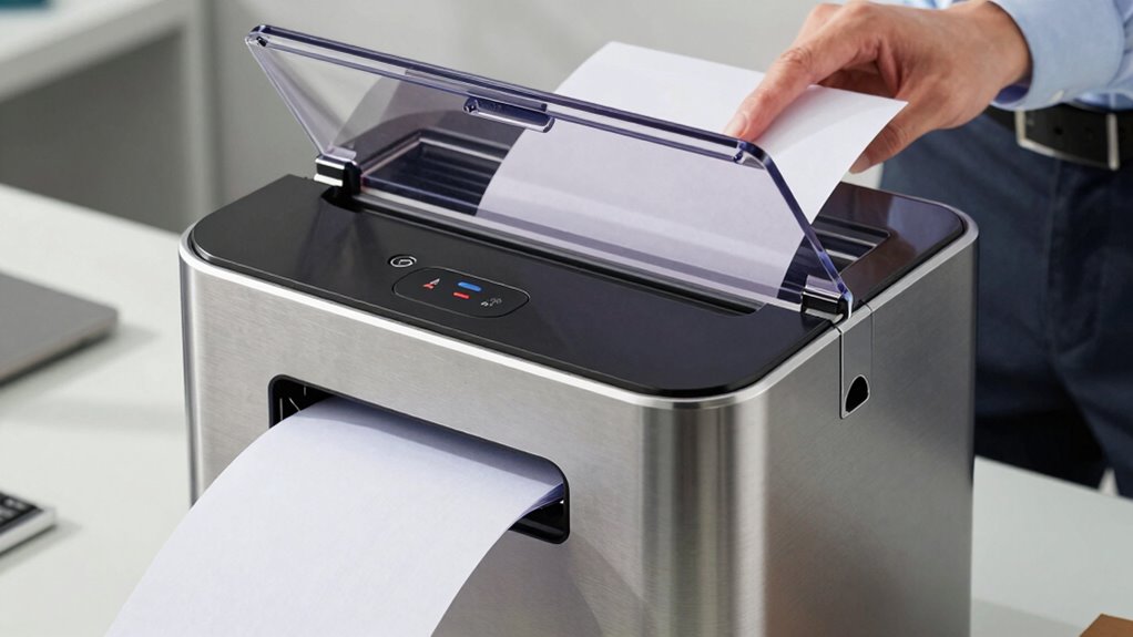 You might think auto feed shredders only handle paper, but they actually offer impressive shredding versatility. While some models can shred non-paper materials like credit cards, staples, or CDs, not all are designed for other materials like cloth or plastic. Always check your shredder’s specifications before attempting to feed non-paper items. Using the right machine for different materials saves you time and prevents damage, keeping your workflow running smoothly.