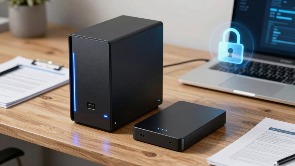 So, which option truly keeps your documents safer—an encrypted external hard drive or a NAS? While both offer strong protections, the choice isn’t straightforward. Each has its vulnerabilities that could be exploited, leaving your data exposed in unexpected ways. The real question is, are you prepared for the unforeseen risks lurking beneath the surface? Think carefully. Sometimes, the safest option might surprise you—if you know where to look. The decision could change everything.