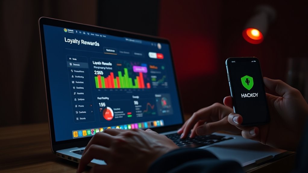 Loyalty points are valuable assets that can considerably enhance your shopping experience, but they also pose security risks if not properly protected. When you store your points in digital wallets or online accounts, you’re essentially holding sensitive information that hackers might target. Digital wallets are convenient, but their convenience can be a double-edged sword if you don’t take proper precautions. If your digital wallet isn’t protected with strong, unique passwords or two-factor authentication, it becomes an easier target for cybercriminals seeking to exploit vulnerabilities. Account hacking is a real threat; once a hacker gains access, they can drain your loyalty points, making it impossible to redeem rewards or even causing you to lose accumulated benefits altogether. Cybercriminals often use phishing schemes or malware to steal login credentials, so if you’re not vigilant, your loyalty account could be compromised without you knowing it until it’s too late.