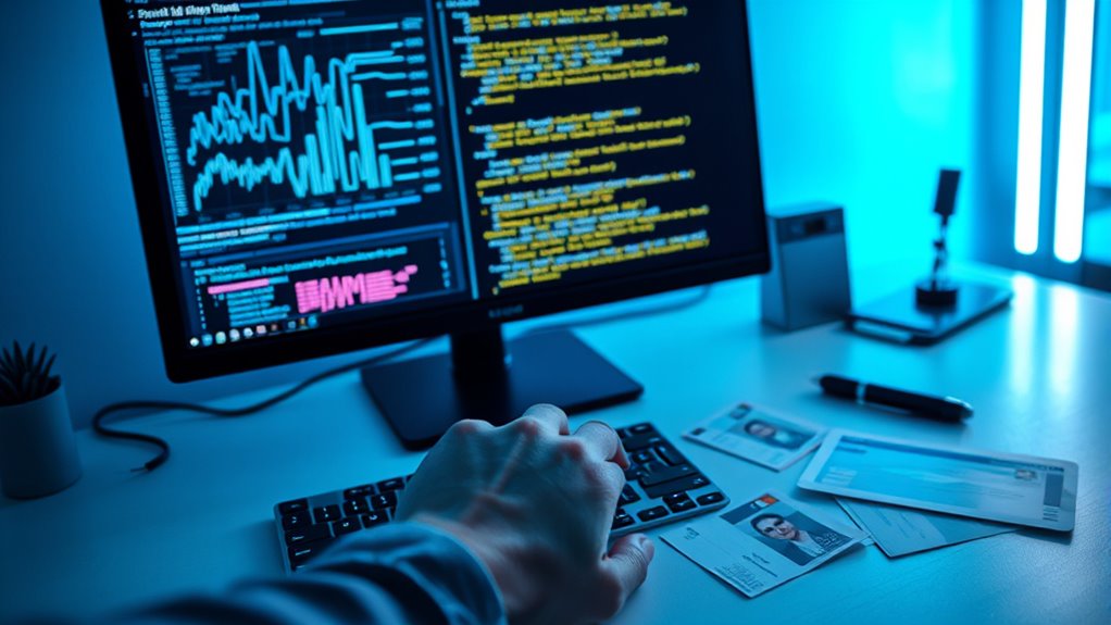 AI acts like a double-edged sword in SIF—cutting both ways. Criminals harness its power to craft convincing synthetic identities, making their frauds smoother and harder to spot. At the same time, you can deploy AI as a vigilant guardian, analyzing patterns and catching anomalies before they cause damage. It’s a high-stakes game where AI’s role is vital—either as an accomplice or a protector.